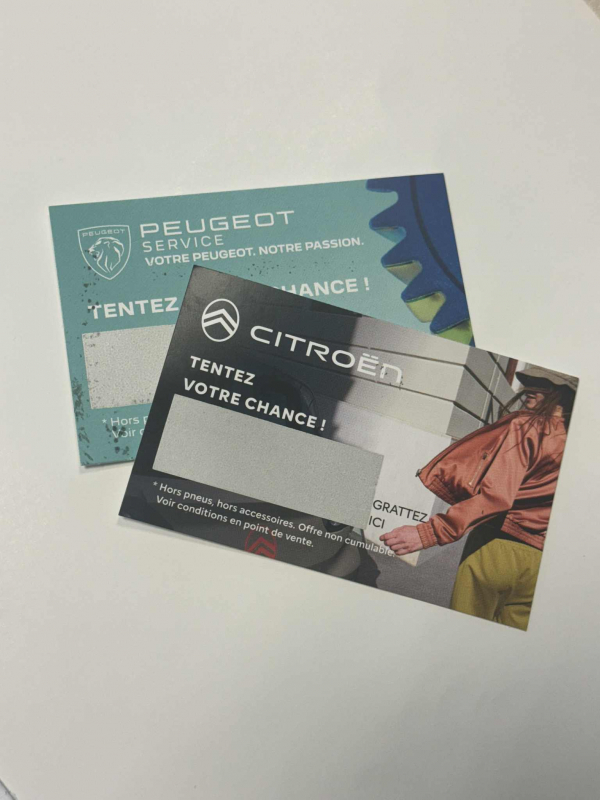 Bonne nouvelle : à chaque passage en atelier pour un entretien, ou une réparation mécanique, tentez votre chance avec nos cartes à gratter Citroën & Peugeot.